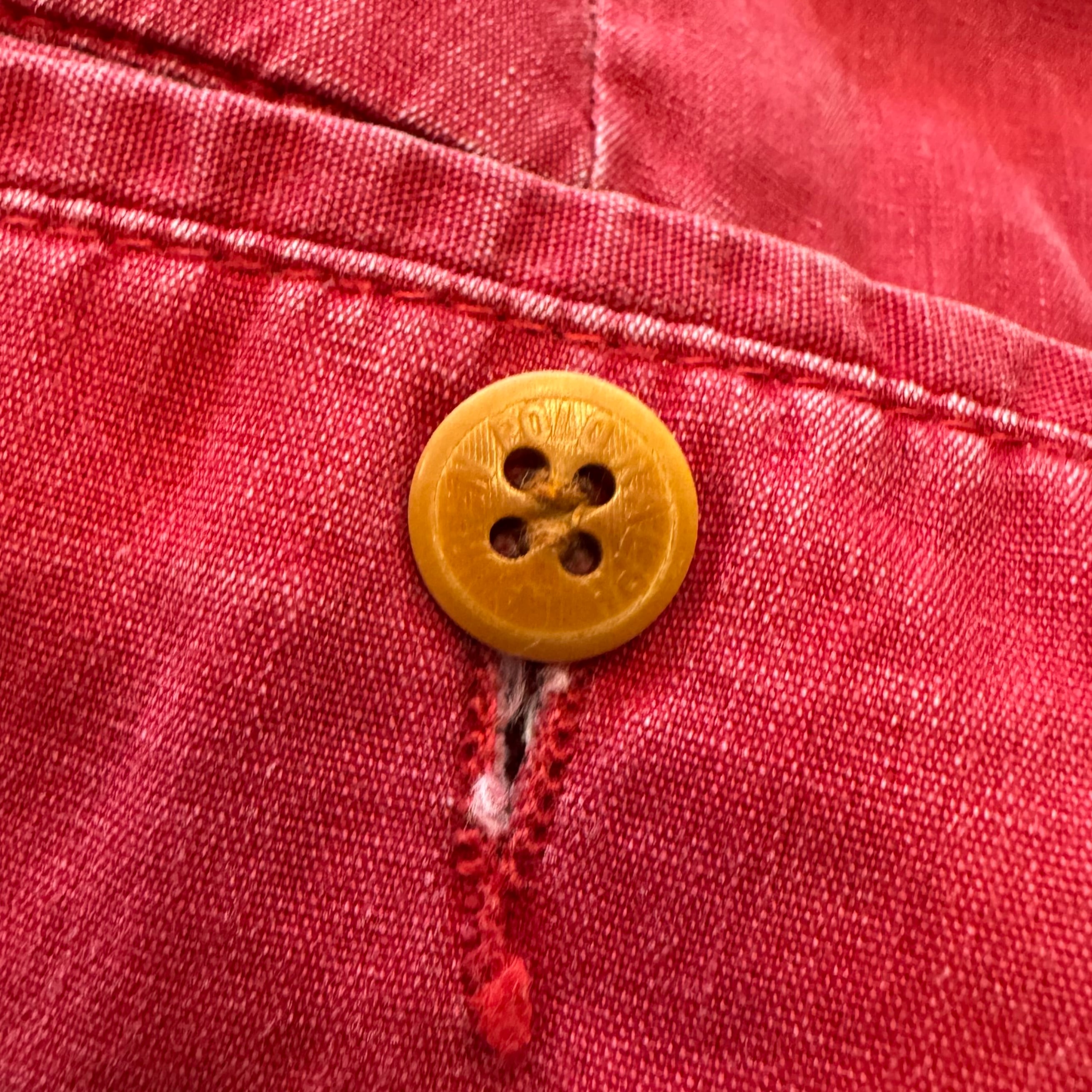 チノの様なツイル地では無く平織りで、色はレッドとピンクとの中間の様な色味です。